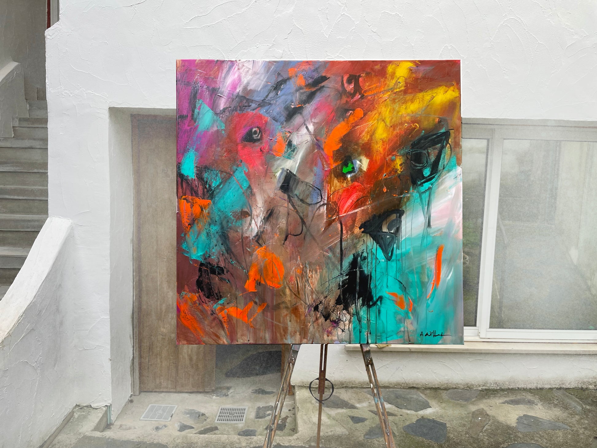 Upon closer inspection, subtle suggestions of fragmented faces or eyes emerge, adding an element of intrigue and evoking fleeting glimpses of hidden figures within the abstraction. The textured brushstrokes and deliberate drips of paint enhance the sense of spontaneity and emotion, encouraging personal interpretation and connection.