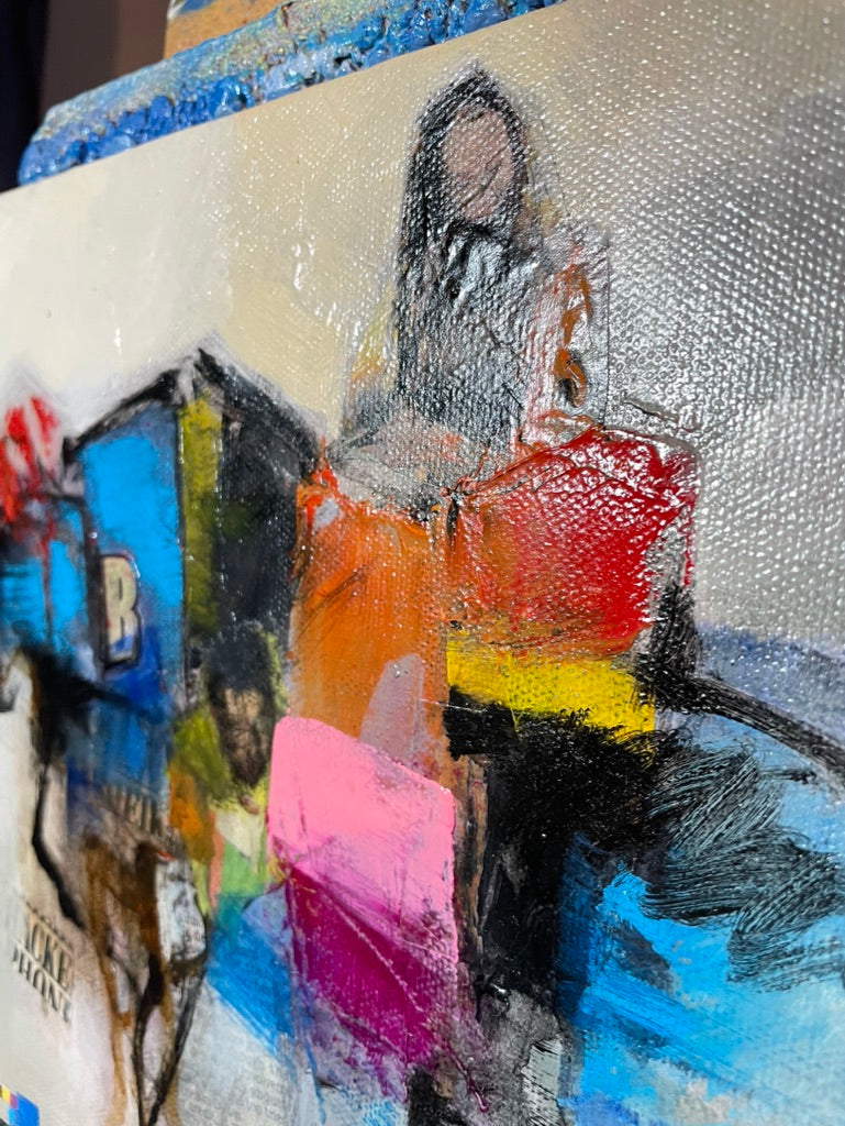 Beautiful abstract free asscociative piece, I think it's about negotiating through life if I were to explain my thinking while working on it, in a way most pieces of art are about that. The pics dont capture the feel of its silky gloss varnished finish.