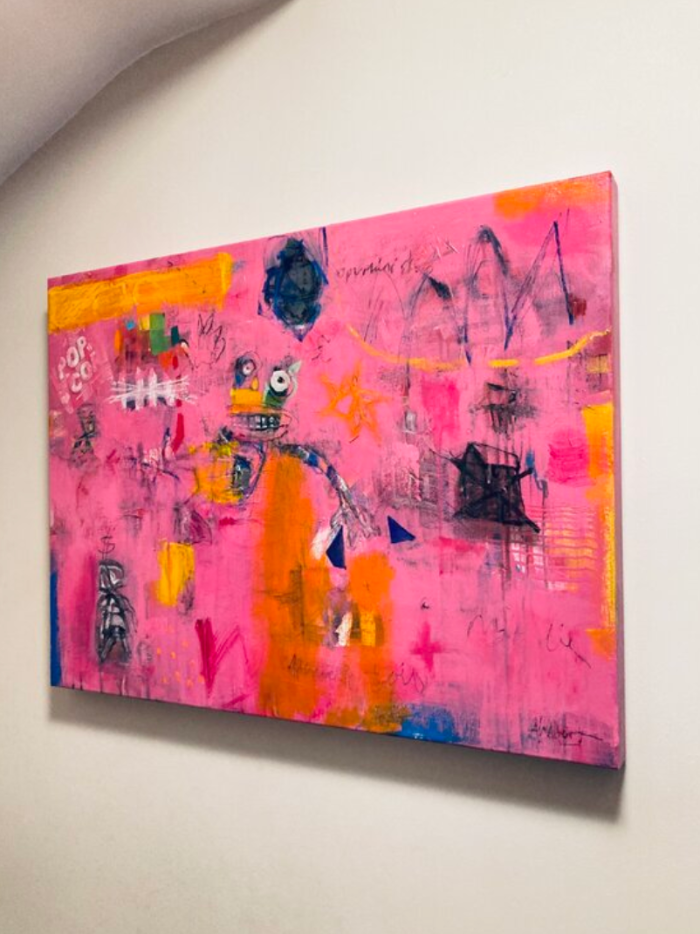 Magenta color field, take your eye for a wander around the areas both hidden and on display . Varnished, acrylic on canvas. all paintings are ready to hang.