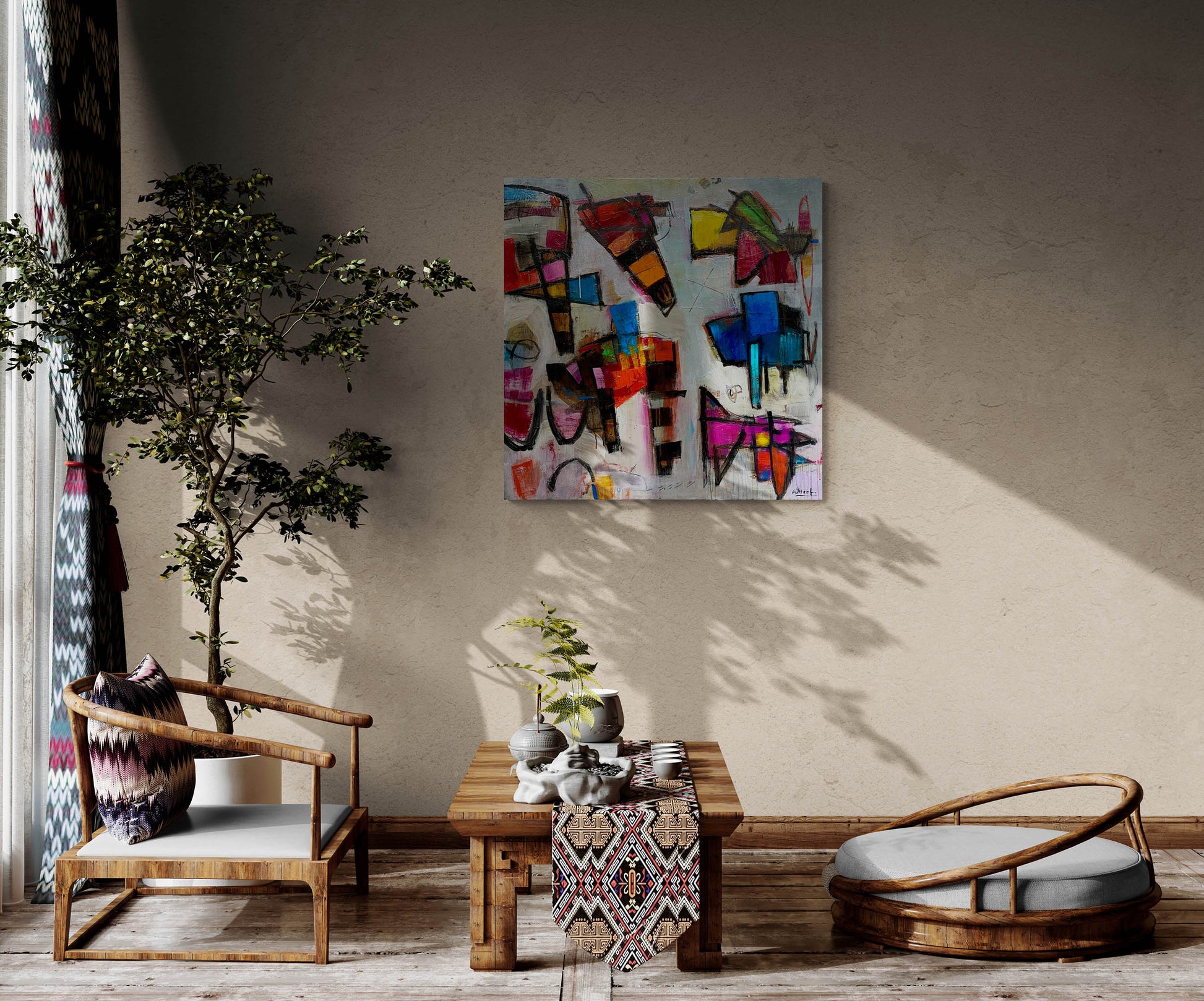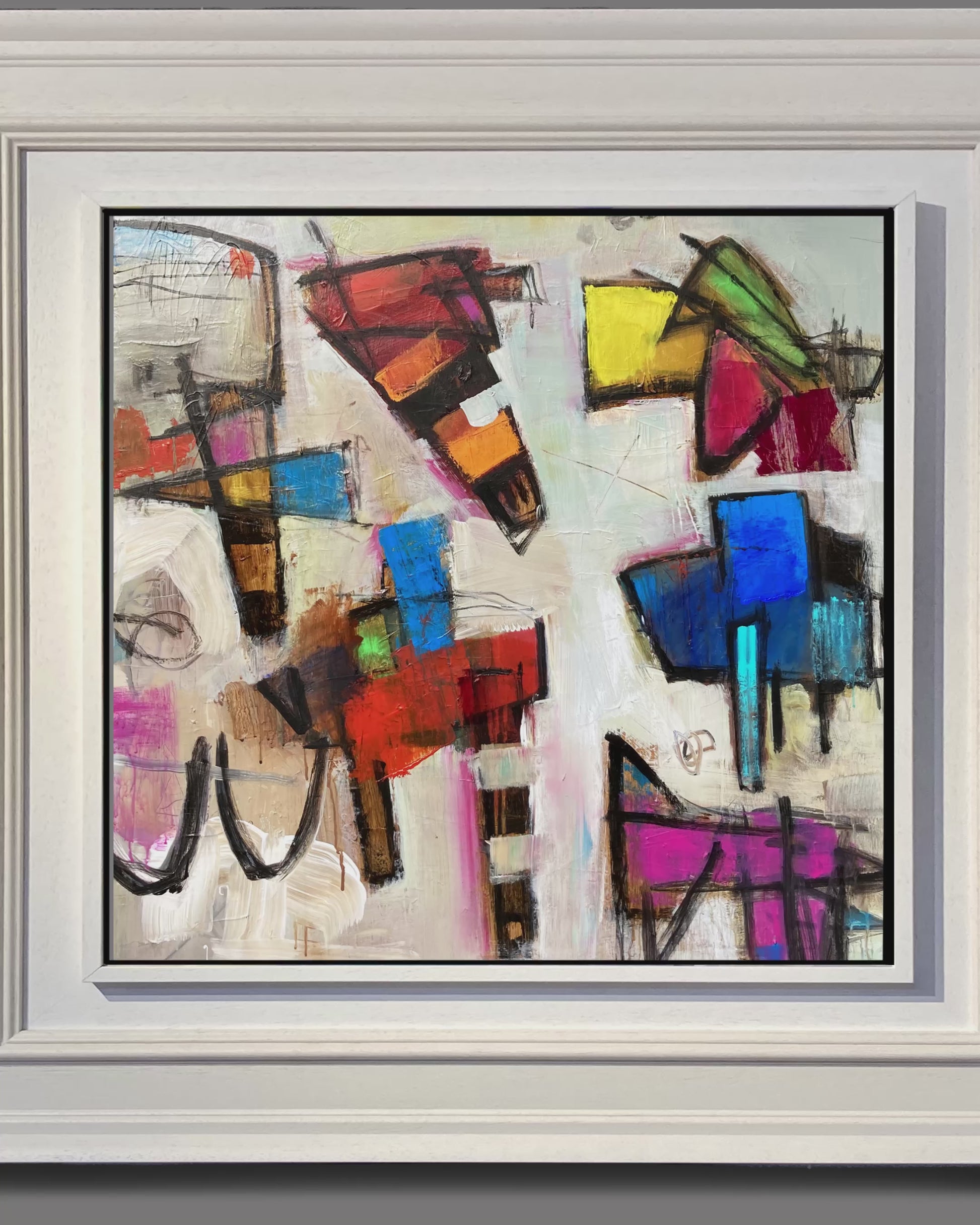 Abstract painting. Shipped as a stretched canvas, ready to hang. The framed image is to give an idea of how it might look in that type of frame. I am happy to photoshop different types of frames, as I love seeing how the painting takes on a different personality.